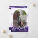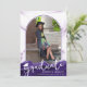 Crea una impresionante invitación de fotos de graduación con agate morado geode y purpurina falso púrpura para tu hija con tipografía de escritura manuscrita de moda para el título GRADUATE acentuado con una gorra de graduación o un mortero en blanco y una foto en un arco moderno en la parte delantera. En la parte posterior se muestra una foto y el texto de su personalizado para incluir detalles sobre su graduado. Hace un diseño único que refleja su estilo y/o se coordina con sus fotos o colores escolares para compartir con sus amigos y familia. ASISTENCIA: Para obtener ayuda con la modificación o personalización del diseño, el cambio de color, el cambio de tamaño o la transferencia del diseño a otro producto, póngase en contacto con el diseñador ANTES DE PEDERLO a través de la pestaña del MENSAJE de chat de Zazzle que aparece a continuación o envíe un correo electrónico a makeitaboutyoustore@gmail.com.