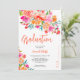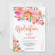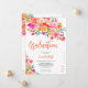 Invitación a casa abierta de Boho naranja floral con naranja pintado a mano, flores rosadas y amarillas, ilustracion acuarela con un moderno y elegante tipo de letra de escritura , con vegetación bohemia. Perfecto para primavera, verano fiesta al aire libre
