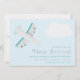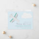 Una tarjeta moderna para anunciar la llegada de su bebé. Este diseño presenta un ilustracion digital de un avión gris y verde jade en un cielo azul claro con una nube blanca. "New Arrival" está en un moderno tipo de letra, y el nombre de su bebé y su despedida están en verde jade. El reverso muestra tu foto favorita de tu bebé.