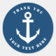 Pegatinas gracias por el presentador de náutica azul y blanco. Elegante azul marino y blanco favorece a pegatinas y sellos para sobres. Pegatinas de agradecimiento personalizados, guardar la etiqueta de fecha, selladores de sobre. Diseño clásico del logotipo marítimo. Color del fondo del personalizable. Agradable para la fiesta de boda temática, cumpleaños, ducha de bebé, ducha de novia, compromiso, aniversario o vacaciones. Ideal para navegantes, patinadores, capitanes, aficionados a la vela, etc. Añade tu propio apellido o iniciales más la fecha establecida para el matrimonio. Accesorios para bodas y suministros para fiestas.