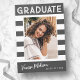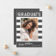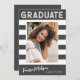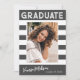 Fotos de invitación de graduación a rayas y retro de moda, con elementos de diseño de texto retro con escritura a mano. La foto de los graduados está acentuada con audaces rayas blancas. La parte posterior de la tarjeta ofrece espacios de texto personalizados para obtener información sobre su graduación y viaje futuro. Escribir en blanco sobre gris o fácilmente personalizar el fondo para que coincida con el color primario de su escuela o cualquier color de su elección. Perfecto para el bachillerato, la universidad y la universidad.