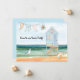 ¿Planeando un fiesta en la playa? ¿O tal vez un fiesta o una ducha de temática playera? Estas acogedoras invitaciones incluyen una cabaña de playa, una gaviota, banderas náuticas decorativas y un balón de playa. Introduzca detalles como el nombre de su fiesta, hora, lugar, ubicación para que sus huéspedes puedan encontrar a su fiesta de playa. Después, personalizar tu dirección de retorno y envía un mensaje a tus invitados en la parte posterior. Todo lo que necesitas es una red de voleibol, un protector solar y bebidas frías. Este bonito diseño acuático da el tono costero adecuado a cualquier fiesta de playa o temática marina que se esté planeando.