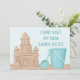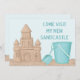 Una forma divertida de hacer saber a tu contacto social que te has mudado a una casa de playa. Invite a su familia y amigos a que se unan a su nueva comunidad de playa sandcastle. Agregue su nueva dirección y un mensaje de texto en la parte posterior de esta nueva tarjeta de dirección.