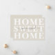 Anuncie su nueva dirección a amigos, familiares y asociados con esta moderna tarjeta de invitación móvil Hogar Dulce Hogar. Un fondo beige neutro tiene el texto blanco "Hogar dulce hogar" con letras en negrita y modernas. "Hemos movido" el texto está sobrepuesto sobre el texto de fondo en un tipo de letra manuscrita gris carbón. La parte posterior de la tarjeta tiene una plantilla de texto con un mensaje de ejemplo para proporcionar su nueva dirección y una nota breve, junto con otra información de contacto deseada. Puede agregar o quitar líneas de texto que desee personalizar el texto con la información deseada. Seleccione "hacer clic en el cliente más adelante" en la parte inferior de la plantilla de diseño para abrir la plantilla para editarla, agregar o quitar líneas de texto o mover el texto para reubicarlo como desee.
