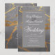 Moderna y sofisticada, invitación de boda con fondo gris y mármol dorado. Puede cambiar las fuentes en esta invitación de boda si lo desea.