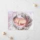 Lovely Light Purple Picture & Script Text Photo Baby Tarjeta de anuncio de nacimiento con texto blanco que puedes personalizar y enviar a tu familia y amigos para anunciar la llegada de tu nuevo paquete de alegría. Puedes reemplazar la foto de muestra con la de tu propio bebé. El color de texto blanco y gris (en la parte posterior de la tarjeta) se puede cambiar mediante el menú de edición. Un color púrpura muy claro adorna la parte posterior de la tarjeta. Hay otros colores disponibles. ¡Te ofrezco órdenes de personalizado para que puedas pasar tu tiempo con tu familia mientras lo has hecho! Contáctame si necesitas ayuda o si tienes alguna pregunta. @Miri Creations - Creado Solo Para Ti. ¡Disfrútalo!