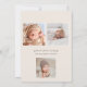 Moderno anuncio de bienvenida a bebé de foto nacimiento. Tarjeta multifoto de anuncio de nacimiento con lugar para una foto de bebé en la parte delantera y tres fotos más pequeñas en la parte posterior. Diseño minimalista moderno con escritura Bienvenidos al frente del anuncio de nacimiento.