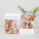 Anuncia la llegada de tu bebé niño con este moderno anuncio de nacimiento a doble cara. La parte delantera cuenta con un collage de cuatro fotos de tus fotos favoritas de tu bebé con una tipografía gris claro simple. Personaliza con el nombre de tu bebé, fecha de nacimiento, estadísticas de nacimiento y nombres de los padres.