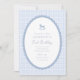 Classic and timeless blue gingham first birthday invitation featuring a sweet rocking horse illustration inside a soft scalloped frame. This elegant storybook baby boy birthday invitation is perfect for celebrating a little one’s first birthday with a traditional, vintage-inspired style. The soft blue palette and delicate typography make it ideal for a boy first birthday party, nursery rhyme themes, heirloom-style celebrations, and classic childhood events. A charming choice for parents looking for a refined blue rocking horse birthday invitation with a gentle, traditional feel.
