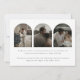 Invitación de Elopement, Boda de Arco de 4 Fotografías Modernas. Diseñado con '¡nos fugamos!' en elegantes letras de guiones, personaliza esta tarjeta boda con cuatro de tus fotos bodas favoritas en la parte delantera y trasera en bellos arcos pequeños. Personalizar con tu mensaje de retiro para amigos y familiares.