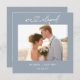 Anuncio de fuga sin recepción | Tarjeta de anuncio de boda con foto 'nos fugamos' de letra manuscrita simple y elegante en azul polvoriento para minimalista | Tarjeta de boda de fuga con letra caligráfica |