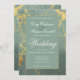 Moderno y sofisticado, fondo de color azul verde con mármol dorado Invitación de boda. Puede cambiar las fuentes en esta invitación de boda si lo desea.