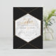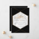 Invitaciones de boda de mármol + panal de abejas dorado falso, acentuadas con una hermosa fuente de escritura moderna a mano y color de fondo de bricolaje.