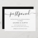 Anuncie el aplazamiento de su boda con esta tarjeta minimalista en blanco y negro que presenta una fuente de escritura moderna.