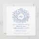 Anuncio Boda en vivo con hojas azules blancas de monograma