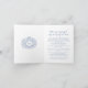 Anuncio de transmisión de video en vivo de boda con monograma de hoja dibujada a mano azul clásico en tarjeta plegada. Esta tarjeta simple pero elegante es parte del conjunto de boda con monograma de hoja dibujada a mano azul y blanco a juego. Ideal para usar como tarjeta de información de boda para informar a sus invitados de un evento de transmisión de boda debido a circunstancias imprevistas. Diseño de hoja simple que rodea el diseño de iniciales de su propio monograma. En tonos de azul clásico oscuro y blanco. Otras opciones de color están disponibles. Diseño original de Sarah Trett para www.mylittleedenweddings.com