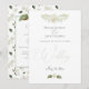 Simple y elegante, la parte frontal de esta invitación de boda de magnolia blanca no contiene toda la información estándar para que sea limpia y minimalista. Los detalles completos están en la parte posterior. La parte trasera presenta un patrón de magnolia blanca y la parte delantera presenta una simple flor de magnolia arriba y abajo.