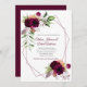 Invitaciones de boda de flores coloridas y románticas que incluyen peonías y anémonas en burgundy, rosa, melocotón y marsala con vegetación y plumas a juego sobre un marco de alambre geométrico. Las plantillas de texto son fáciles de personalizar con su propia información. Si necesita ayuda, por favor envíeme un correo electrónico a shutterbug600@yahoo.com