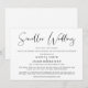 Si las circunstancias requieren que reduzcas el tamaño de tu boda, puedes informar a tu lista de invitados extendida original con este anuncio de boda más pequeña, moderno y minimalista, pero elegante, en blanco y negro. "Boda más pequeña" está escrito en una elegante letra script y puedes personalizar fácilmente el mensaje de reducción de la boda con más detalle y agregar cualquier información de transmisión en vivo de la ceremonia y del sitio web de la boda.