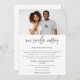 Para ocasiones en que una ceremonia de boda socialmente distanciada es necesaria y deseas informar a tus invitados que estás reduciendo el tamaño y los invitas a la transmisión en vivo , este diseño moderno y contemporáneo tiene tu foto en la parte superior, y un estilo de escritura a mano elegante con Nuestra boda más pequeña debajo. El resto del texto puedes personalizarlo fácilmente con tus detalles.