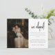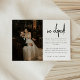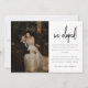 Anuncio de Boda Minimalista con Foto y Huida. Agrega tu foto de boda favorita al lado izquierdo de la tarjeta, y tu mensaje de huida para amigos y familiares en la derecha. Personaliza aún más con tus iniciales en la parte posterior.