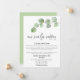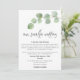Para ocasiones en que es necesaria una ceremonia de boda más pequeña con distanciamiento social y deseas informar a tus invitados que estás reduciendo el tamaño e invitarlos a la transmisión en vivo, este diseño contemporáneo tiene una elegante rama de hojas de eucalipto en la parte superior y una escritura moderna con estilo con Nuestra boda más pequeña debajo. El resto del texto puedes personalizarlo fácilmente con tus datos. También puedes cambiar el color de fondo verde coordinado en la parte posterior a otro color si lo deseas a través de la opción Personalizar más.