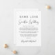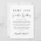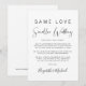 Si las circunstancias requieren que reduzcas tu boda, puedes informar a tu lista de invitados extendida original con este anuncio de boda más pequeño, moderno y minimalista, pero elegante. "Mismo Amor Boda Más Pequeña" está escrito en una mezcla de tipografía simple y una letra contemporánea. Puedes personalizar fácilmente tu mensaje, agregar tus nombres en una letra similar a una firma y agregar el sitio web de tu boda en el reverso para que tus amigos y familiares encuentren más información, como enlaces de transmisión en vivo de la ceremonia.