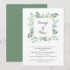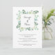 Anuncia a tu familia y amigos un cambio en la fecha de la boda con esta elegante tarjeta. El diseño presenta un cuadrado blanco bordeado de vegetación y flores. El texto manuscrito dice: Cambio de planes.