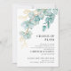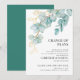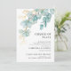 Anuncia a tu familia y amigos un cambio en la fecha de la boda con esta elegante tarjeta. El diseño cuenta con un gráfico de acuarela de elegante eucalipto azul teal y dorado. El texto personalizado te permite agregar una nueva fecha de boda.