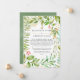 Anuncio de tarjeta de lista de invitados reducida con vegetación cristalina deslumbrante y marco geométrico de oro. En estos tiempos inciertos, puede suceder que tenga que celebrar una boda más pequeña de lo planeado originalmente. ¡Esta tarjeta de anuncio eliminará la incomodidad y le quitará un peso de encima! Además, puede ofrecer la opción de unirse a usted para una ceremonia virtual.