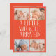 Modern Christmas theme birth announcement card featuring a bold typography text that says "a little miracle arrived" with 4 of your newborn pictures. This is a birth announcement card for the holiday seasons! Add your pictures, birth stats, and a message! The background is red.