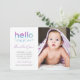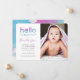 Este bonito anuncio de nacimiento presenta un sencillo diseño de acuarela "hola" en morado, azul, verde azulado y verde menta, junto con una rama de laurel a juego debajo. Fácil de personalizar con la foto, nombre e información de nacimiento del bebé para invitaciones únicas que puedes enviar a tu familia y amigos! La parte trasera de la tarjeta presenta un diseño acuático pintado a mano con los mismos colores que se mencionan arriba, con la textura original del papel acuarela. Para consultas de diseño o productos, por favor contacte conmigo (Tracey) en orabellaprints@outlook.com.