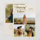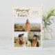 Modern and whimsical graduation announcement photo card featuring 3 photos on the front with a text that says "Honoring a bright future." Add the graduate's name, information, and message to personalize this card. Cream background.
