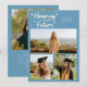 Modern and whimsical graduation announcement photo card featuring 3 photos on the front with a text that says "Honoring a bright future." Add the graduate's name, information, and message to personalize this card. Denim blue background.