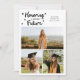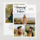 Modern and whimsical graduation announcement photo card featuring 3 photos on the front with a text that says "Honoring a bright future." Add the graduate's name, information, and message to personalize this card. White background.
