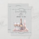 Una elegante invitación a la novia para un brunch y una ducha de burbujas. Una imagen ligeramente rosa de una botella de champán y copas de vino. La invitación está enmarcada en falsos diamantes
