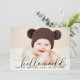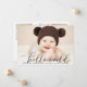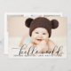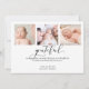 Caligrafía "hola mundo" con estadísticas y tu foto favorita. En el otro lado, agregue tres de sus fotos favoritas con un mensaje caligráfico "agradecido" y personalizado o elimine el texto para un mensaje manuscrito. No olvide escoger el tipo de papel al hacer el pedido.