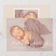 La tarjeta de presentación de fotos de nacimiento simple y dulce presenta a tu bella bebé recién nacida con una foto de paisaje en la parte delantera y una foto cuadrada extra en la parte trasera. Personalice el guión moderno de caligrafía con letras blancas con el nombre completo del bebé y personalizar el texto elegante con todas las importantes estadísticas de nacimiento. Un patrón de puntos de polka abstractos blancos se viste en la parte posterior de este diseño de tarjetas de dos caras. El color de fondo de color beige crema neutro de la parte posterior de la tarjeta se puede modificar para coordinar con las fotos.