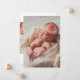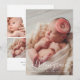 Elegante y minimalista tarjeta de anuncio de foto-nacimiento presenta a tu bella bebé recién nacida con una foto de paisaje en la parte delantera y un simple collage de fotos en la parte trasera. Formato de tarjeta vertical. Personalice el guión moderno de caligrafía con letras blancas con el nombre completo del bebé y personalizar el texto restante con todas las estadísticas de nacimiento importantes.