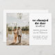 Si has cambiado la fecha de tu boda, pero has decidido no esperar para casarte y te has escapado en su lugar, comparte tu gran noticia con tus seres queridos con este anuncio de fuga. Cuenta con una sola foto, así como espacio para los detalles sobre tu fuga. La parte trasera de la tarjeta tiene espacio para un mensaje personal.