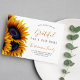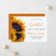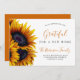 Moderna y elegante tarjeta de invitación en movimiento familiar de Acción de Gracias con un hermoso ramo de girasoles naranja quemado amarillo y un guión de tipografía de moda sobre fondo blanco.