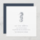 Anuncie su nueva dirección con estas elegantes tarjetas de invitación costera en movimiento, con un ilustracion de caballito de mar de estilo vintage con un azul marino ahumado. Personalice con su nombre, dirección y invitación debajo de las letras clásicas en bloque y cursiva. Nos encanta el papel Felt Ecru por un acabado de lujo elevado.