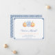 Diseño atemporal en azul y blanco (con un toque de naranja otoñal) que incluye mi cerámica de jarrón de jengibre pintada a la acuarela e ilustraciones de calabaza. Estos fueron originalmente pintados a mano por mí antes de ser escaneados en forma digital. Esto se complementa con un borde de "Llave Griega". He configurado la plantilla para un cambio de dirección, pero todos los campos de texto son personalizables según tus necesidades. Puedes mover, eliminar o agregar campos de texto ingresando a la herramienta de diseño. También puedes cambiar el color de contraste del borde de Llave Griega en la parte delantera y el patrón en la parte trasera (mostrado aquí como azul oscuro) a cualquier color que desees ingresando a la herramienta de diseño (debajo del área de personalización de texto, haz clic en "personalizar más") y luego cambiando el color de fondo en la parte del