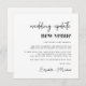 Anuncio de cambio de lugar de boda chic con "actualización de boda nuevo lugar" escrito en una tipografía moderna y tipografía trendy en negrita (personalizable a "nueva fecha", "boda más pequeña", etc.). Personaliza tu mensaje de cambio de planes, agrega tus nombres en una escritura similar a una firma y agrega tu sitio web de boda en el reverso o déjalo en blanco.