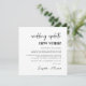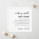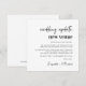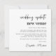 Anuncio de cambio de lugar de boda elegante con "actualización de boda nuevo lugar" escrito en una tipografía moderna y tipografía atrevida y de moda (personalizable a "nueva fecha", "boda más pequeña", etc.). Personalice su mensaje de cambio de planes, agregue sus nombres en una escritura similar a una firma y agregue su sitio web de boda en el reverso o déjelo en blanco.