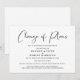 Anuncio de cambio de planes de boda moderno y minimalista en blanco y negro, aplazamiento o cancelación. "Cambio de planes" está escrito en una elegante letra cursiva y puedes personalizar fácilmente si la boda ha sido cancelada, la fecha ha sido pospuesta o cualquier otro detalle ha sido cambiado.