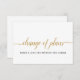 A veces las bodas necesitan ser pospuestas. Pide a tus invitados que cambien la fecha de tu boda con este diseño simple y elegante que presenta las palabras "cambio de planes" en tipografía moderna de oro en la parte frontal junto con tu mensaje y nombres en la parte trasera.