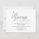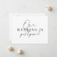 Una maravillosa tipografía moderna y simple Nuestra boda queda pospuesta tarjeta de anuncio de boda. Diseño minimalista en blanco y negro con estilo de fuente tipográfica en la parte delantera y trasera. La parte trasera de la tarjeta dice "No podemos esperar hasta que podamos reunirnos de nuevo". Agregue su mensaje personal para enviar a sus invitados de boda para que sepan que deben verificar su sitio web de boda y que se enviará una nueva tarjeta de confirmación cuando sea el momento adecuado.