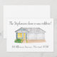 Esta encantadora tarjeta de anuncio presenta una hermosa ilustración de acuarela de una moderna casa de una sola planta en azul y blanco. Puedes reemplazar esto con una imagen cargada de tu nuevo hogar (se prefiere fondo transparente o blanco). La letra manuscrita gris muestra el nombre de la familia y la nueva dirección. ⚠ Esta obra de arte está dibujada a mano por JessicaAmber y está 100% libre de IA ⚠ ••• Para ver más tarjetas ilustradas, visita mi tienda Zazzle.com/EventsByJessicaAmber ••• Para pedidos personalizados y gráficos editados (por ejemplo, si deseas esta tarjeta con una casa roja en su lugar) envíame un mensaje en Zazzle
