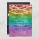 Invitación de recepción de boda LGBT con fondo degradado de arcoíris y luces de hadas personalizadas con una foto de boda en el reverso. Invitación de celebración post fuga con fondo de colores de arcoíris y luces de hadas. Invitación encantadora para la celebración post ceremonia de boda lésbica con tema de arcoíris.